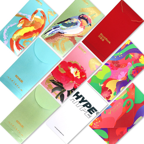 Bolsa de papel de arte compensado elegante personalizada para vacaciones Ang Pow Hongbao sobre rojo chino regalo de la suerte Logotipo de impresión de cartón de papel